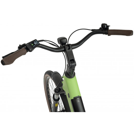 The frame geometry was created with urban routes in mind – comfortable, stable, and safe. The reinforced down tube adds extra stiffness, while the clean cockpit system keeps all cables neatly hidden for a sleek and tidy look.