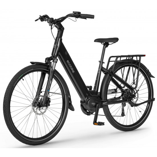 The Ecobike LX 100 is equipped with an intelligent assist system featuring the Bafang M210 motor, which operates quietly and efficiently, delivering power and torque up to 80 Nm. The frame geometry allows for a comfortable riding position, and its universal design appeals to various tastes. The MIK system on the rear rack lets you securely mount panniers.