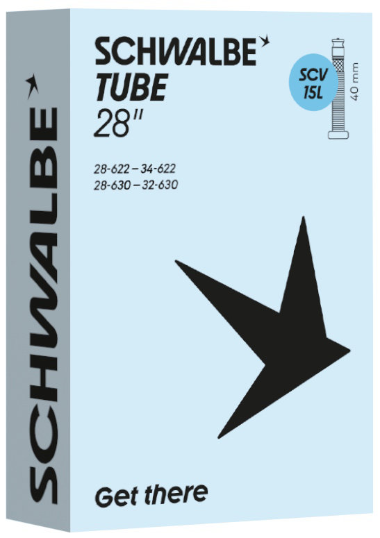 Schwalbe standard bicycle inner tube no. 15L. For bicycle tires in size 28" inch (ETRTO 28/34-622, 28/32-630). Holds air for an above-average length of time. Thanks to the best material quality and uniform wall thickness. Maximum reliability that has proven itself millions of times over.
