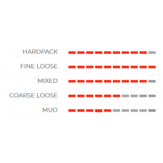 - Fast rolling on fine loose terrain thanks to the revolutionary fish scale pattern