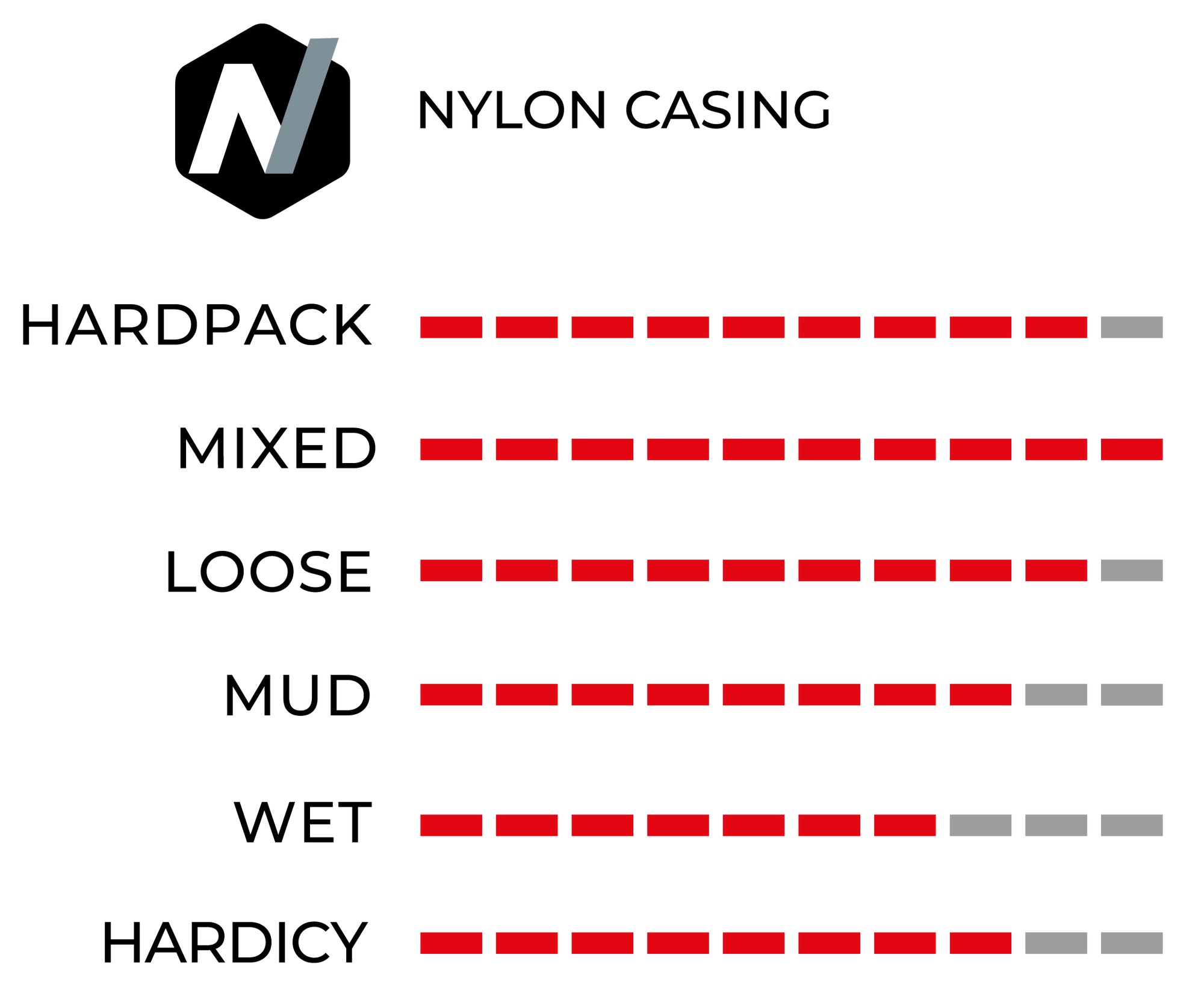 - Medium spaced knobs for a range of terrain and conditions
