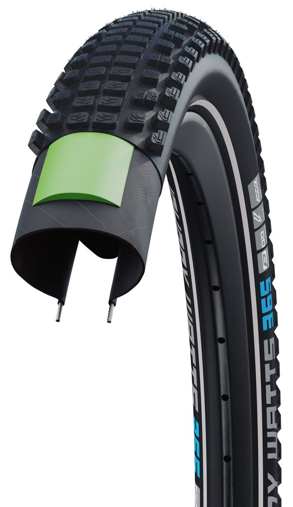 GREEN GUARD - This 3mm thick puncture protection insert along the tread consists of one-third recycled natural rubber. It not only prevents punctures, but also increases comfort.