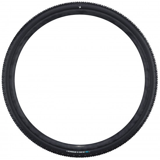 Race Performance on Any Terrain. As an expert for top performance on rough terrain, the RX model completes Schwalbe's G-One PRO portfolio. Its aggressive tread design ensures secure control on loose surfaces, rocky gravel and muddy trails, even at high speeds. While the "Boomerang" elements in the center enable smooth rolling and improved braking, the outer lugs provide more traction and the necessary lateral stabilization in fast corners and on demanding tracks. The intermediate studs in turn provide a strong grip, even under load. Thanks to its design with wide gaps, the G-One RX PRO folding tire also has self-cleaning properties, which are particularly beneficial in muddy conditions.