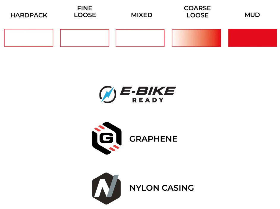 ENDURANCE FORMULATION POWERED BY GRAPHENE – Engineered for toughness and all-day reliability, this Graphene-infused rubber compound stands up to the repeated accelerations, sharp cornering, and rough terrain of cyclocross training. It delivers consistent grip and performance in all conditions, making it ideal for both hard training sessions and race day.