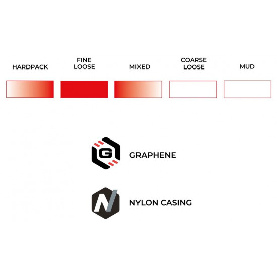 ENDURANCE FORMULATION POWERED BY GRAPHENE – Engineered for toughness and all-day reliability, this Graphene-infused rubber compound stands up to the repeated accelerations, sharp cornering, and rough terrain of cyclocross training. It delivers consistent grip and performance in all conditions, making it ideal for both hard training sessions and race day.