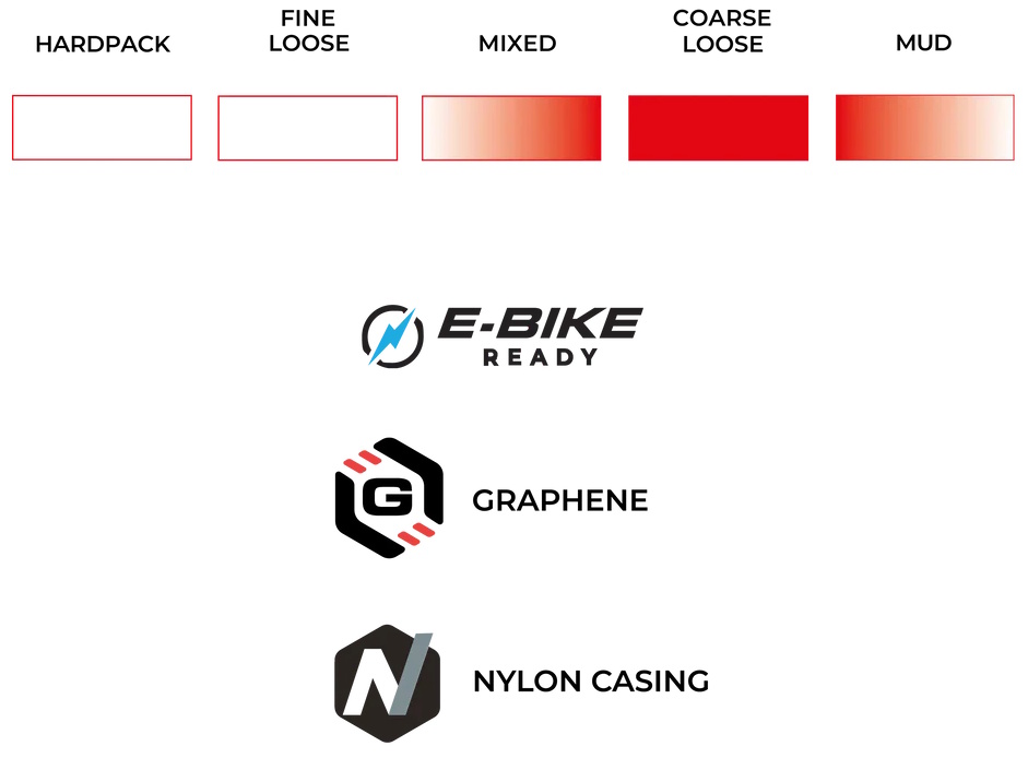 ENDURANCE FORMULATION POWERED BY GRAPHENE – Engineered for toughness and all-day reliability, this Graphene-infused rubber compound stands up to the repeated accelerations, sharp cornering, and rough terrain of cyclocross training. It delivers consistent grip and performance in all conditions, making it ideal for both hard training sessions and race day.