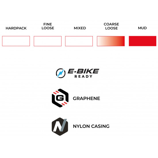 ENDURANCE FORMULATION POWERED BY GRAPHENE – Engineered for toughness and all-day reliability, this Graphene-infused rubber compound stands up to the repeated accelerations, sharp cornering, and rough terrain of cyclocross training. It delivers consistent grip and performance in all conditions, making it ideal for both hard training sessions and race day.