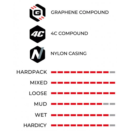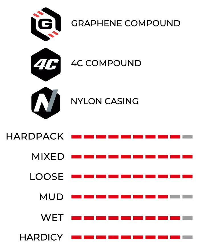 4COMPOUND FORMULATION POWERED BY GRAPHENE – 4 optimized compounds strategically placed where they are needed for an unparalleled blend of speed, grip, and durability.
