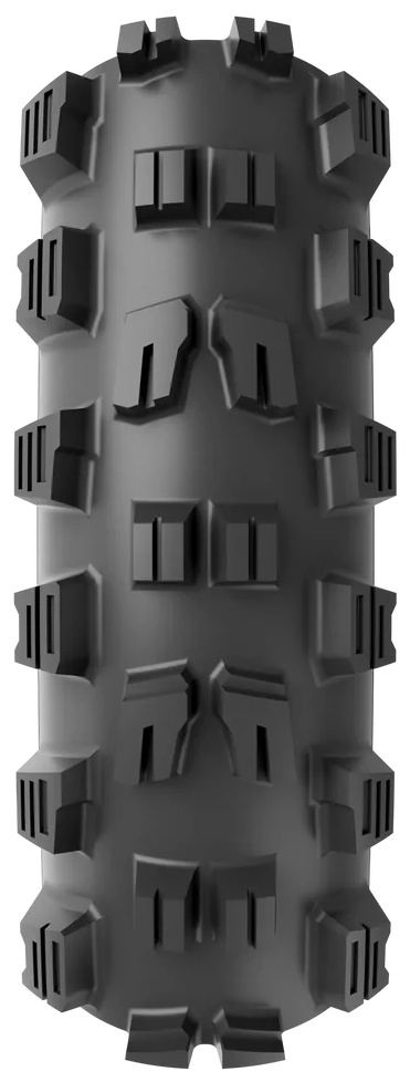 While cornering or gripping off-camber rock faces, progressive siping on the shoulders varies the tread’s edges to balance responsive trail-feel with tenacious grab and no instability – glued, in control, and predictable. On climbs, the Mazza digs in with staircase leading edges that thrive on punchy rollers and technical rocky cruxes alike. Between the two, voracious spacing gobbles and clears loose, loamy soil and clingy muck.