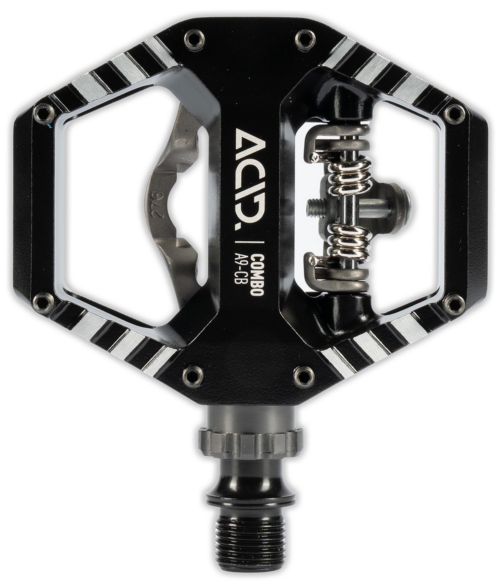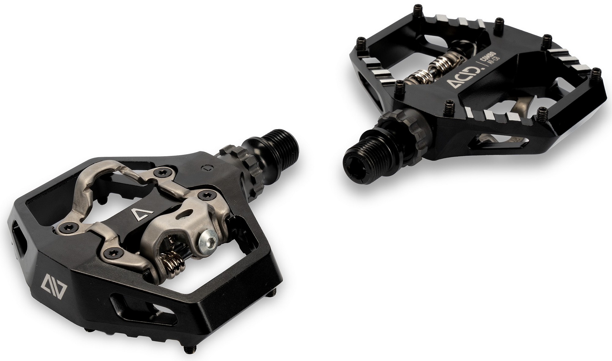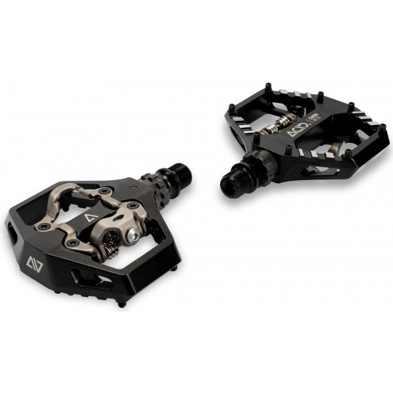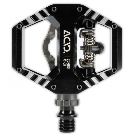 For gravel or city riding, the acid pedal combo a9-cb offers the best of both worlds: the convenience of a grippy flat pedal on one side, and the security and efficiency of an spd-compatible clip on the other. The compact aluminium cage features eight adjustable and replaceable pins for excellent outsole traction, whilst the clipless mechanism is stainless steel for durability and long-lasting good looks. And the cnc-machined, drilled out cr-mo axle runs on a combination of sealed cartridge and sealed industrial bearings for a long, trouble-free service life.