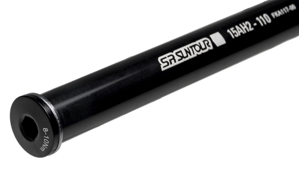 Описание товара - Ось передней втулки SR Suntour 15AH2 110x15mm O.L.D. Thru Axle XCM34 Boost (FKA117-00)