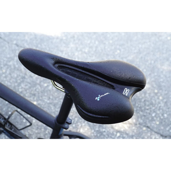 VENTILATION CHANNEL – Don't let overheating spoil your ride: the ventilation function allows for air to flow through your saddle via an anatomically designed cut-out, ensuring a non-sweaty, breezy feeling while cycling. Designed for cool rides and reduced pressure in the perineal area.