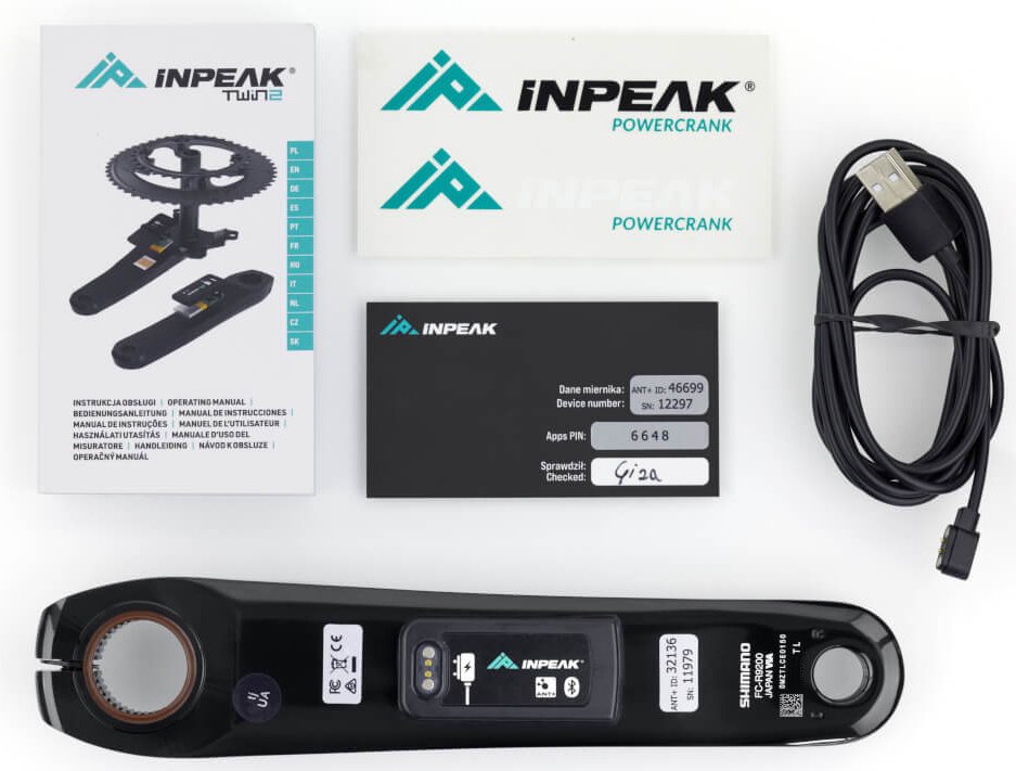 The ANT+ and Bluetooth wireless protocols are responsible for data transfer to compatible bike computers and sports watches as well as to analysis and registration apps on the smartphone. The firmware can be easily updated wirelessly using the INPEAK Manager app. The Powercrank-E sensor is powered by a rechargeable lithium-polymer battery. The powermeter is manufactured in the EU.